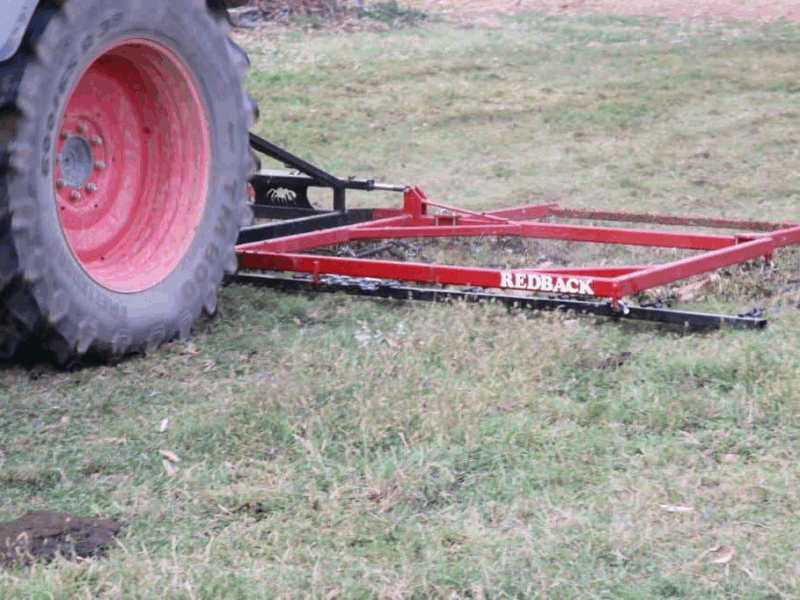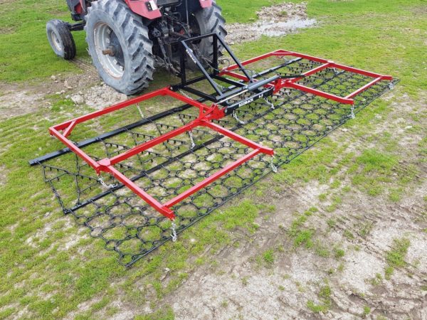 Mounted to this folding transporter the Redback Triangle and Chain Harrows are ideal for general pasture harrowing/ aerating, rotational feeding, leveling and manure spreading. Also used for cultivation finishing & covering seed in some applications.