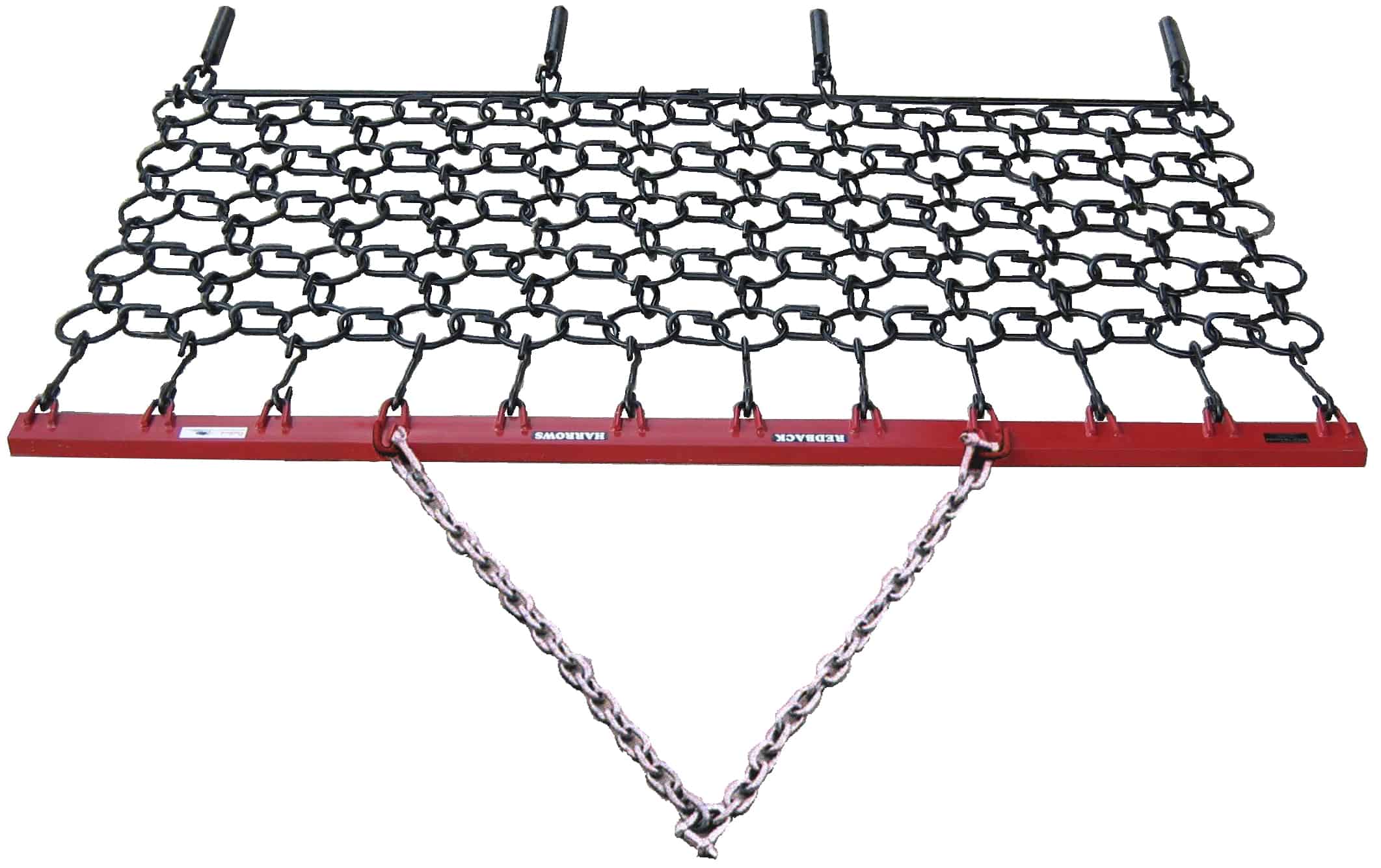 ATV Harrow with minimal drag resistance. (Light) 4 rows of 10mm open chain. Tow behind a mower or ATV. 1.5 & 2.0m sizes available.